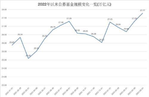 6月29日,中国基金业协会公布2023年5月公募基金市场数据,数据显示,截止5月末,公募基金整体规模达到27.77万亿,超过2022年8月份的27.29万亿峰值,再创历史新高。