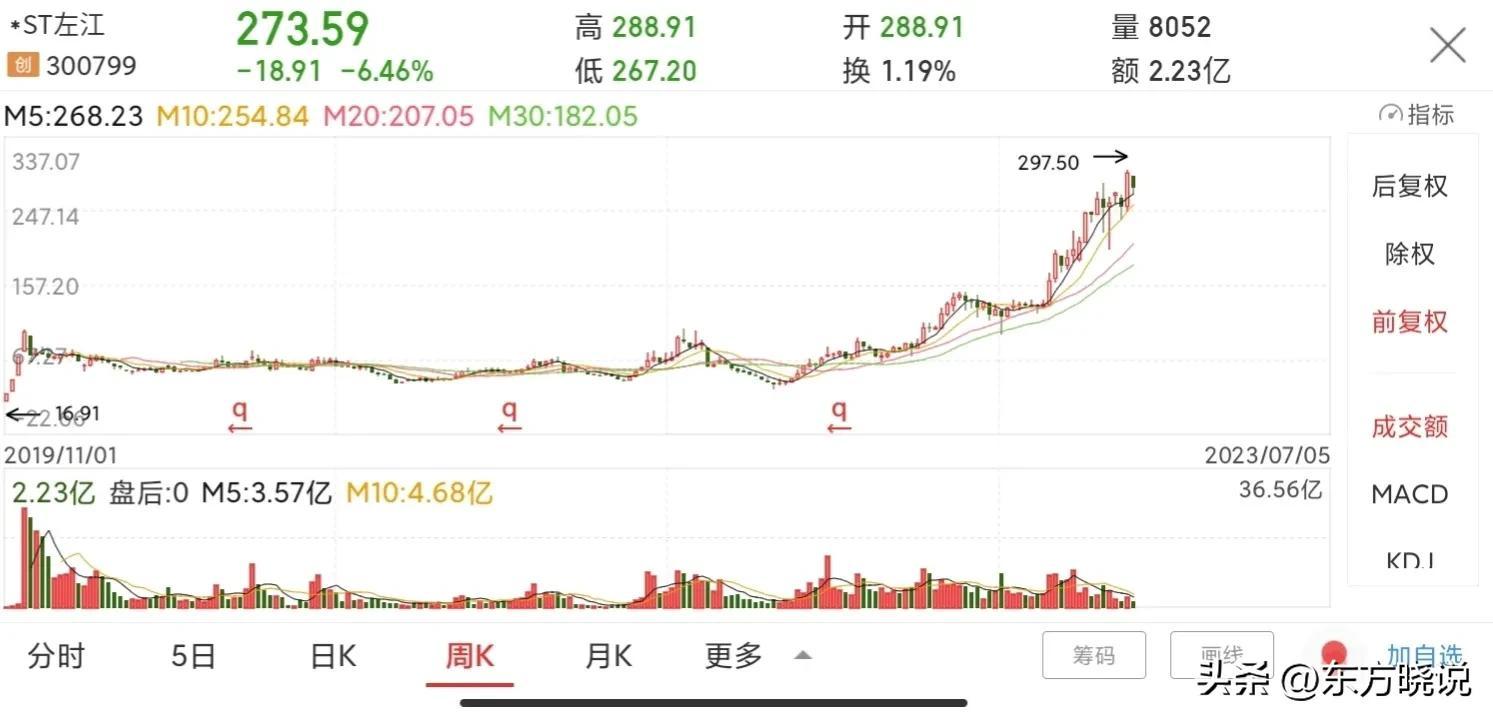带星ST左江居然炒到了快三百元。就想知道庄家要如何出货。现在的散户都学精了,任你怎么拉就是不为所动,吃瓜看戏。故事讲得再好,没有业绩支持,谁信?每天几乎没什么成交量,主力自娱自乐。最后结果如何,主力应该心中有数,只是我们不知道答案而已。他们有的是办法。敢这么做肯定是先写好剧本的。只是结局还没有揭晓。