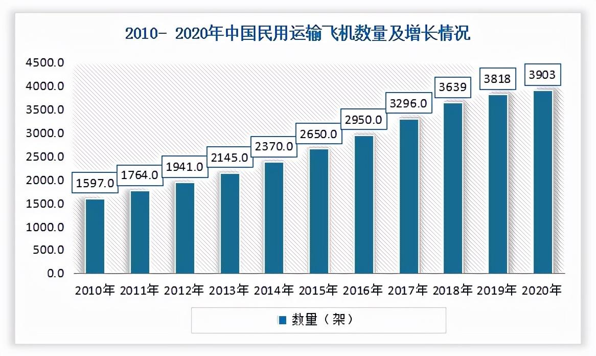 以飞机为例,近年来随着航空客运量持续走高,对民航飞机的需求量保持持续增长。截至2020年底,我国民航全行业运输飞机期末在册架数3903架,比2019年底增加85架。其中客机共有3717架,占比95.2%;货机共有186架,占比4.8%。