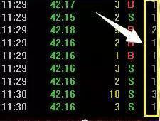 分笔成交明细中的最右边的灰色数字表示的是什么?