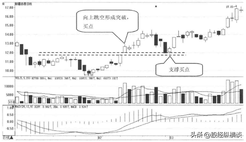 当该股冲高回落后在缺口附近收到支撑,也是买点,投资者要注意把握。