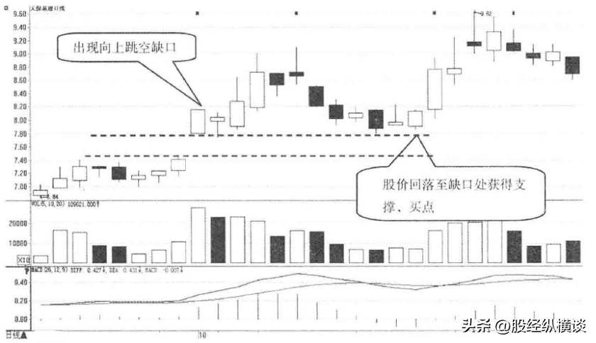 2,在向上跳空缺口形成之后,如果成交量较之前有所放大,表明多方做多热情不减,则短时间内缺口回补概率不大。