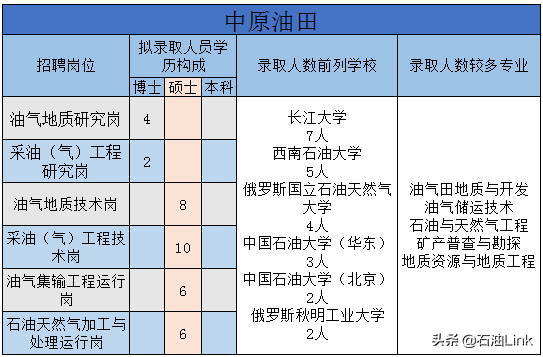 以下为今年中国石化14家油田企业和6家研究院石油相关专业招聘详情: