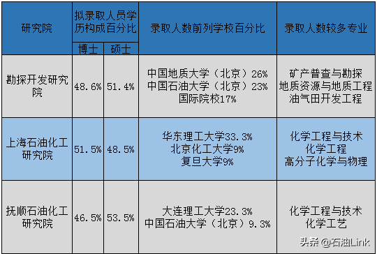 同样,中国石化下属6家研究院录取人员名单中,学历显得更加重要。硕士作为录取的入门门槛,录取人员名单中,博士和硕士基本各占一半。