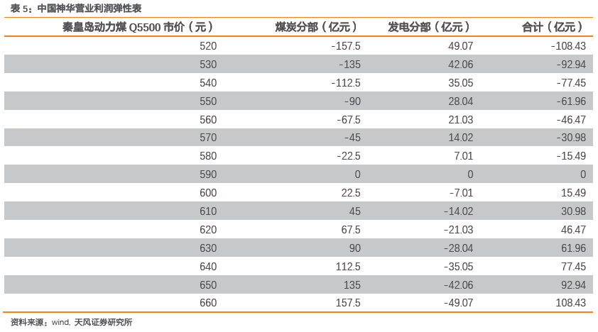 以目前秦皇岛动力煤Q5500 中枢价格为590 估算(2018 年平均价格),市场价每涨跌10元对公司的营业收入影响如下: