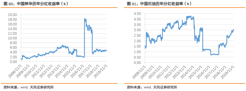 中国神华2017 年巨额分红导致分红收益率大幅上升至13.32%(以当时股价计),排除后计算中国神华分红收益率约为4.35%,预计未来仍旧维持在这一水平左右。