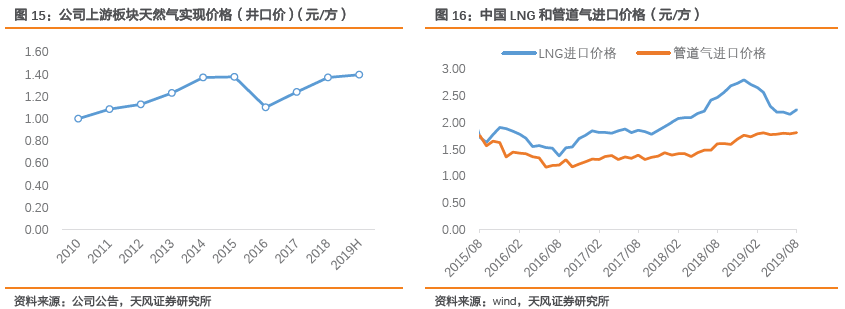 2)“资源换市场”:中国石油控股子公司昆仑能源2019 年10 月公告收购其旗下17 家项目公司股权。“资源换市场”或成未来趋势。公司业绩对天然气价格的弹性值得重视。以公司2018 年国内天然气销量近1600 亿方为基准,气价上调0.10 元/方,EBIT 增厚160 亿。