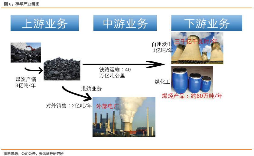 中国神华重视中游和下游布局。公司上游煤炭产量以3 亿吨/年为中枢值略微波动,以需定产,不盲目扩产,着重发展中游运输和下游的煤化工及发电产业。发展重点是: