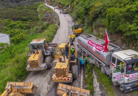 “9.5”泸定地震救灾现场,处处可见“石油蓝”的身影。李悦摄