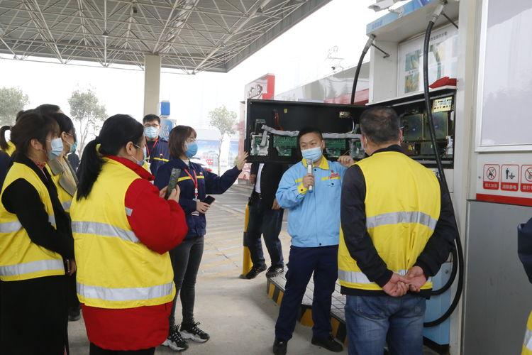 在加油现场,站经理现场介绍加油机自检、强检、三次油气回收系统运行管理、油品知识,加油站油品数质量控制流程,一一展示油品计量、加油机铅封标识,介绍演示油品化验流程及合格鉴定证书。对客关心询问的油品知识等进行了答疑解惑。