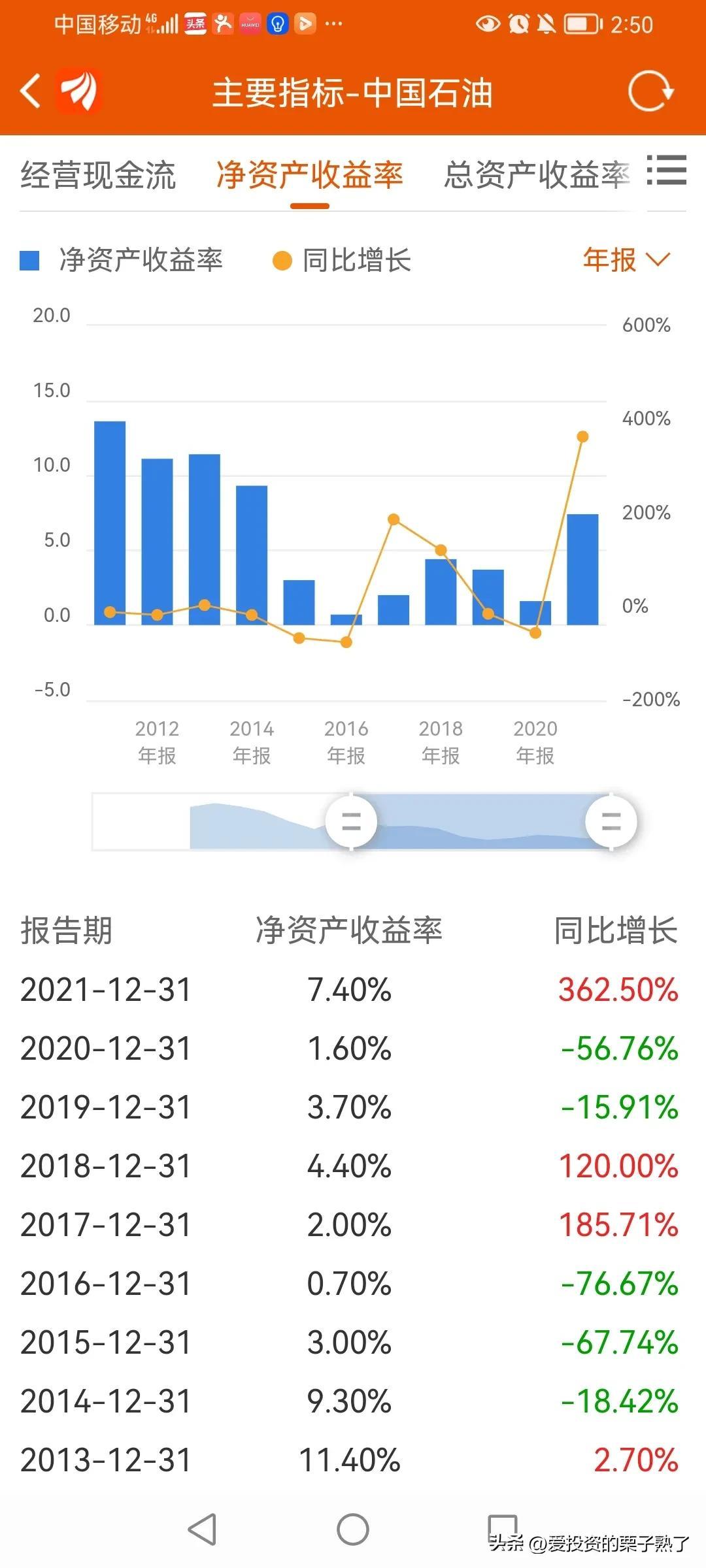 随着国际原油价格下跌,中国石油的净资产收益率一路下滑,从2007年的22%跌到前几年的个位数。