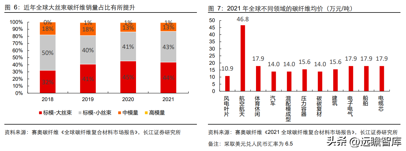 大丝束碳纤维应用以风电、汽车等领域为主。
