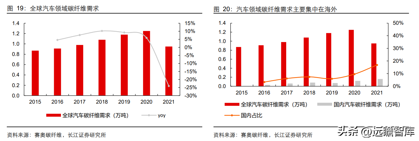 全球来看,汽车为第二大重要的大丝束碳纤维应用领域。