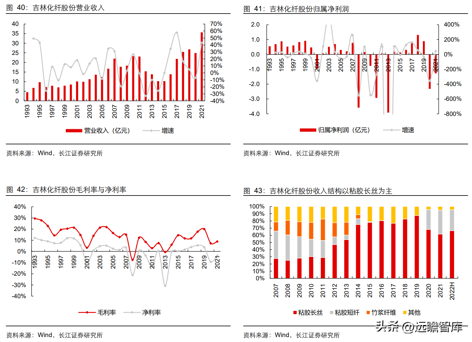 2014 年之前粘胶纤维收入占比约 70%,2014 年之后达 80%以上,最新 2022 年半年报中,公司粘胶纤维收入占比高达 96%。受制于粘胶纤维行业的周期性波动,公司历史上收入与利润的波动较大。