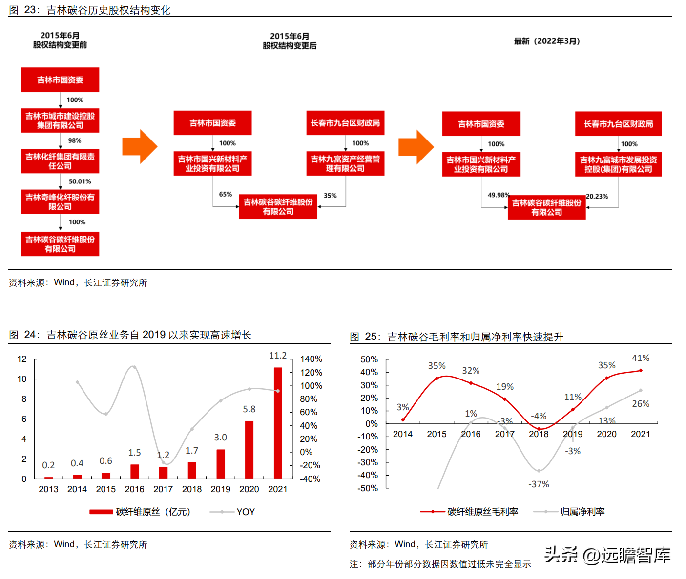吉林碳谷是国内最大的大丝束原丝生产企业,其于 2008 年 12 月设立,原为集团子公司奇 峰化纤的子公司,2015 年 6 月股权独立于集团,由吉林市国资委通过吉林国兴新材料产业投资有限公司控股。