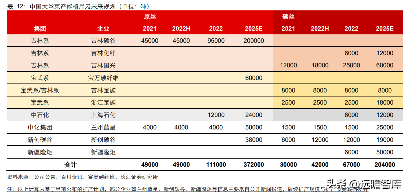 根据扩产计划,在“十四五”末有望达到 7 万吨以上的碳丝产能。