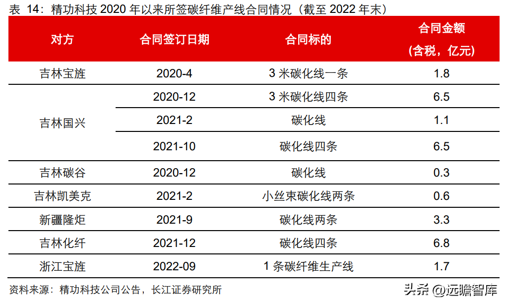 根据精功科技公告,吉林国兴碳纤维自 2020 年 12 月以来,陆续与精功科技签署了 9 条碳化线的供应合同,目前已全部交付。