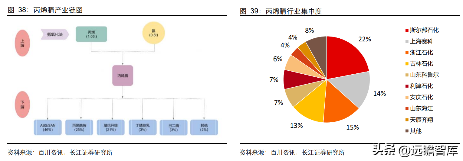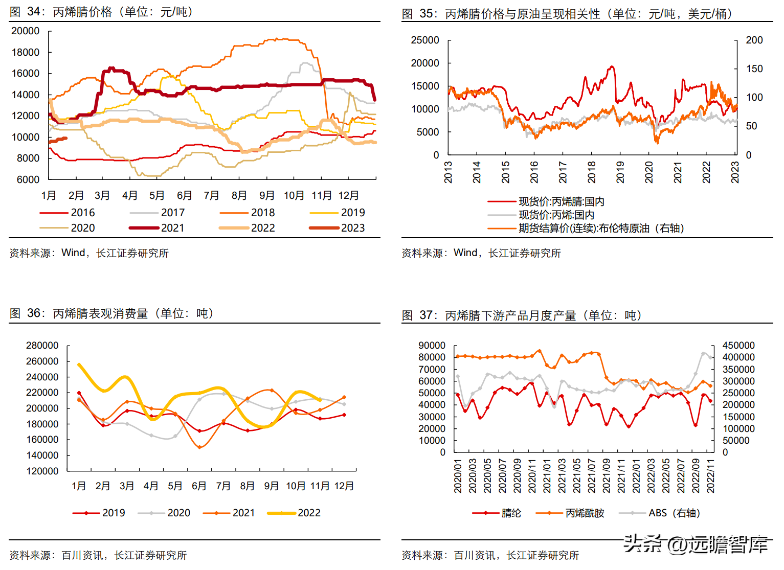 根据吉林碳谷公开转让书,丙烯腈约占原丝生产成本的 38%。丙烯腈做为石化链大宗品,价格与原油密切相关,其下游主要为 ABS、腈纶,涉及工业塑料、纺服等领域。