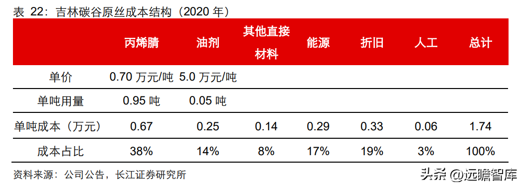 原丝供应有保障,吉林化纤与吉林碳谷协同性强。