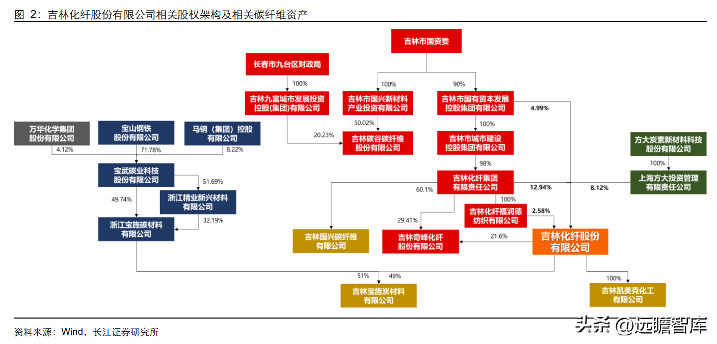 吉林系碳纤维即指吉林市国资委控制的碳纤维资产,集团拟将上市公司吉林化纤股份打造成为碳纤维上市平台,主要承接碳纤+复材资产,而原丝资产在北交所上市公司吉林碳谷。