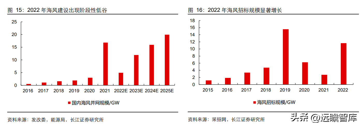 就国内海风装机规模而言,2022 年为阶段性低谷,但充沛招标奠定 2023 年装机规模。