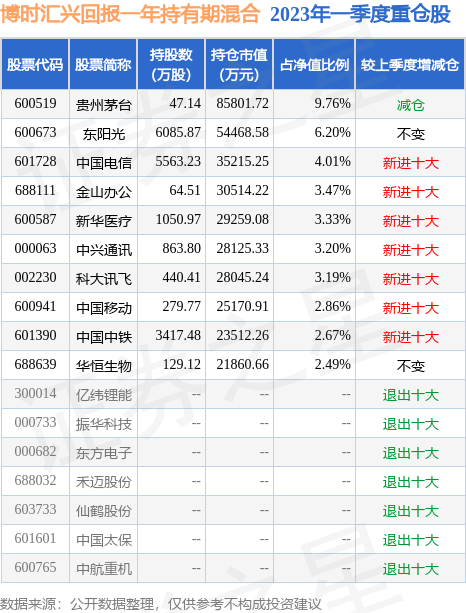 博时汇兴回报一年持有期混合的前十大重仓股如下:
