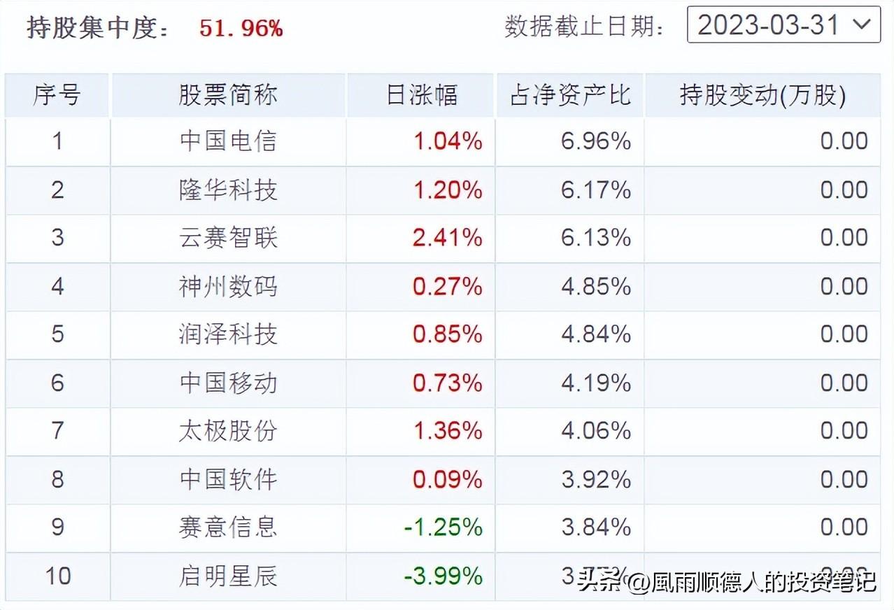 2、基金十大持仓是我们观察基金的一个窗口,从持仓中可以看出这个基金的投资风格。如果我们要对某一行业基金进行投资,查看它的主要资产配置结构(前十大持仓)是一个好选择。