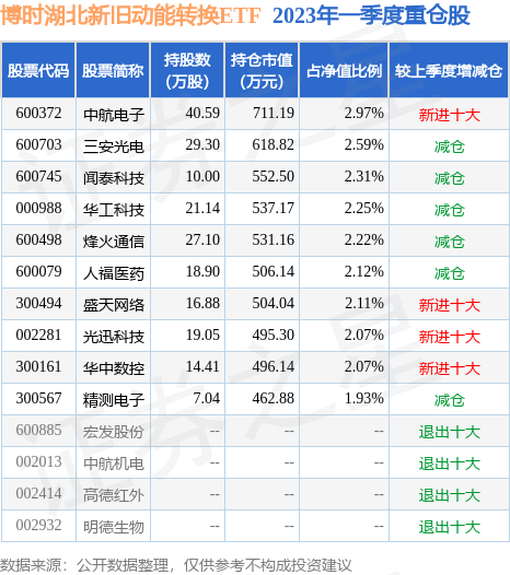 博时湖北新旧动能转换ETF的前十大重仓股如下: