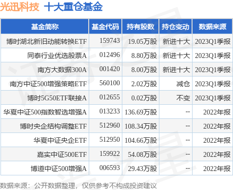 根据2023Q1季报公募基金重仓股数据,重仓该股的公募基金共5家,其中持有数量最多的公募基金为博时湖北新旧动能转换ETF。博时湖北新旧动能转换ETF目前规模为2.39亿元,最新净值0.8698(5月29日),较上一交易日下跌0.21%,近一年上涨11.11%。该公募基金现任基金经理为尹浩。尹浩在任的基金产品包括:博时创业板ETF联接A,管理时间为2019年10月11日至今,期间收益率为36.42%;博时创业板ETF,管理时间为2019年10月11日至今,期间收益率为38.91%;博时中证5G产业50ETF,管理时间为2020年3月27日至今,期间收益率为0.1%;博时新能源汽车ETF,管理时间为2020年12月10日至今,期间收益率为-2.98%。