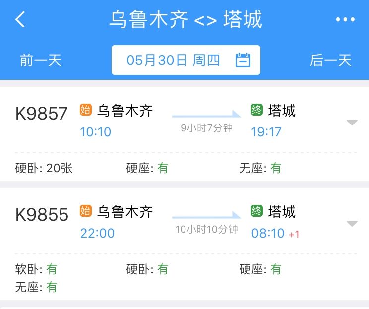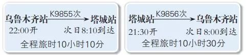 乌鲁木齐至塔城夕发朝至快速旅客列车1对