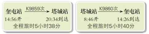 每日将开行3对旅客列车,分别为乌鲁木齐至塔城间2对,5月30日起开行;塔城至奎屯间1对,5月31日起开行