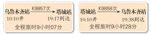 乌鲁木齐至塔城朝发夕归快速旅客列车1对