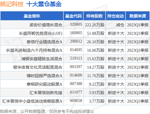 重仓姚记科技的前十大公募基金请见下表: