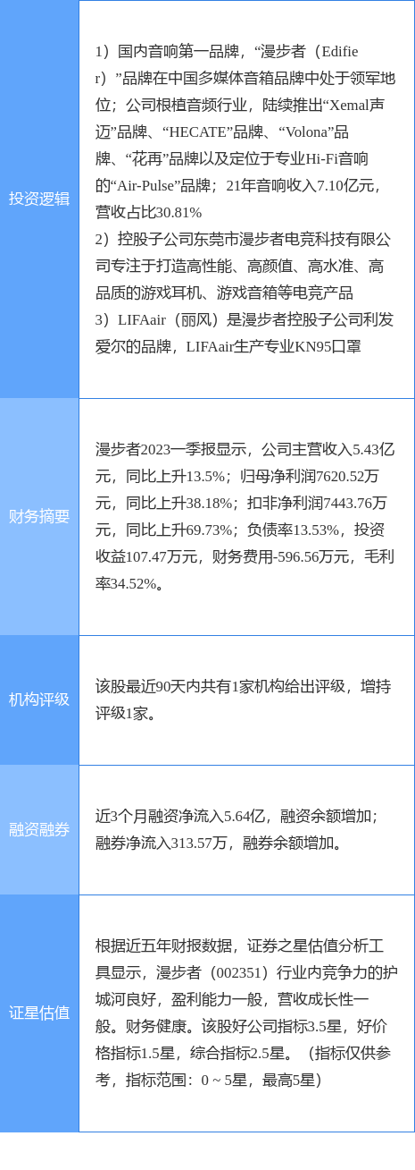 5月4日漫步者涨停分析:电竞,黑色家电,流感口罩概念热股-漫步者股票资讯