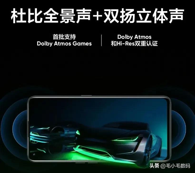 realme 副总裁、中国区总裁、全球营销总裁徐起表示,真我 GT Neo2 标配立体声双扬声器,同时首批支持 Dolby Atmos Games。