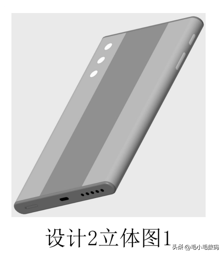 根据该专利设计图显示,该款环绕屏方案的屏占比有所缩减,但仍然会来到 150% 左右。机身正面采用了挖孔屏方案,挖孔位置位于屏幕左上角,而背面采用竖排三摄设计,且开孔位置位于背面屏幕上。