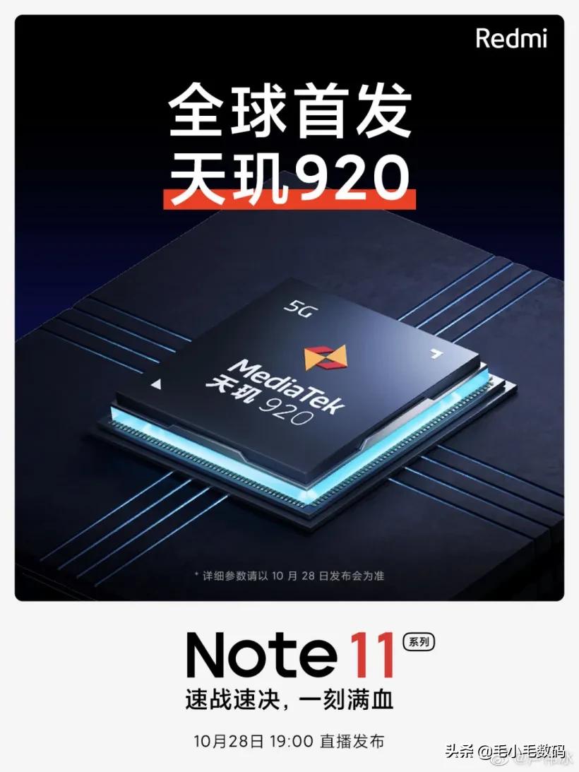 小米官方官宣,Redmi Note 11 系列首发天玑 920 处理器,采用台积电 6nm 工艺,A78 双大核。