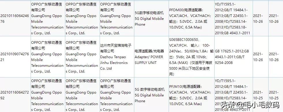 OPPO 近日有多款机型通过了国家 3C 质量认证,例如 PFDM00 和 PFJM10 两款机型支持 65W 快充。