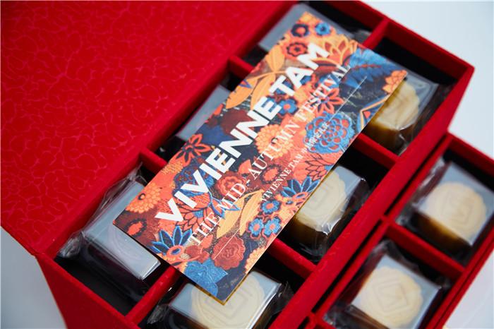 近日,为庆祝中秋节,VIVIENNE TAM推出的中秋限定礼奁,融合了传统食盒与妆奁文化,将中秋的味道装进一方诗意的提盒。沿袭传统食盒最具仪式感的“提梁托盒”旧制,一柄木质黑梁,承托起红色方形匣盒。分上下两层“屉格”,装12枚精致月饼,口味是香港人热爱的奶黄和主打养生的紫薯,月饼正面还印有品牌标识性的VT字样印章图案。