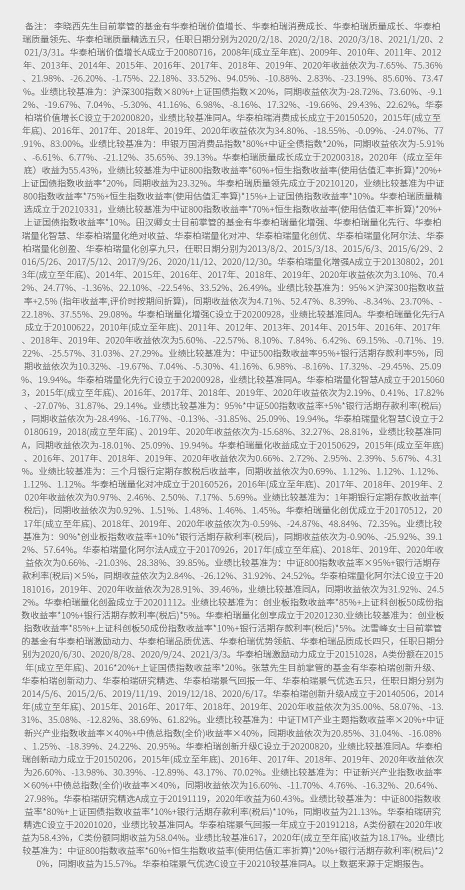 风险提示:如需购买相关基金产品,请您关注投资者适当性管理相关规定,提前做好风险测评,并根据您自身的风险承受能力购买与之相匹配的风险等级的基金产品。基金的过往业绩并不预示其未来表现,基金管理人管理的其他基金的业绩并不构成基金业绩表现的保证。基金投资需注意投资风险,请仔细阅读基金合同和基金招募说明书,了解基金的具体情况。产品由华泰柏瑞基金管理有限公司发行与管理,代销机构不承担产品的投资、兑付和风险管理责任。
