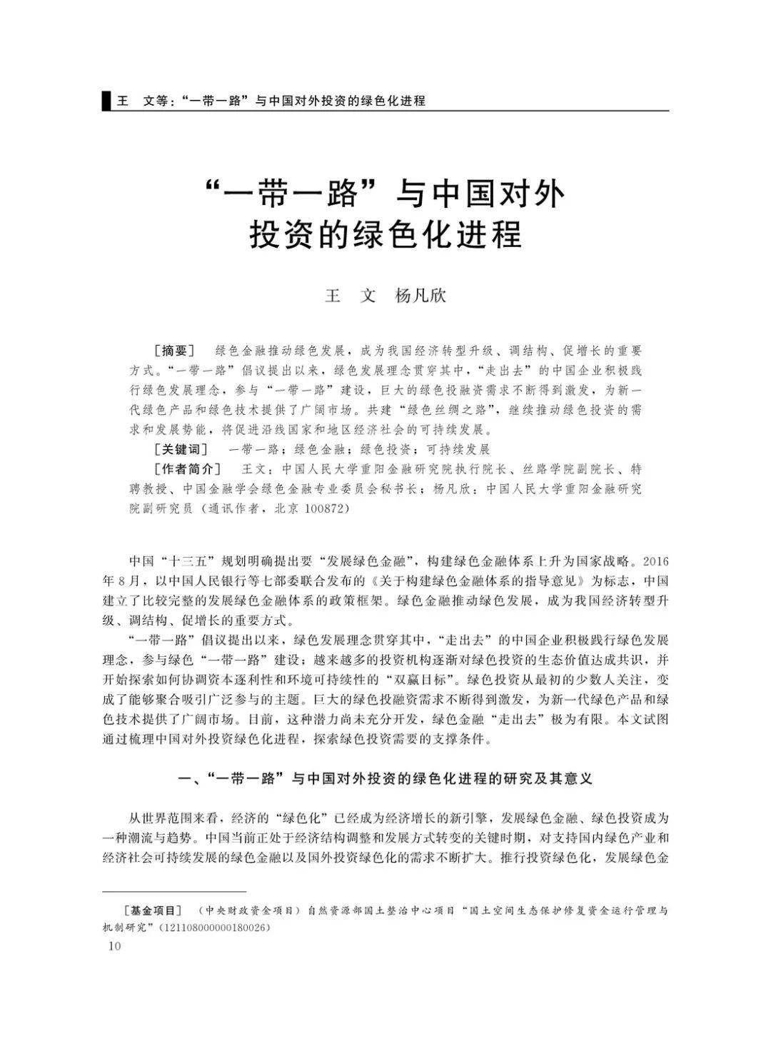 「一带一路」王文杨凡欣:“一带一路”与中国对外投资的绿色化进程-绿丝路基金