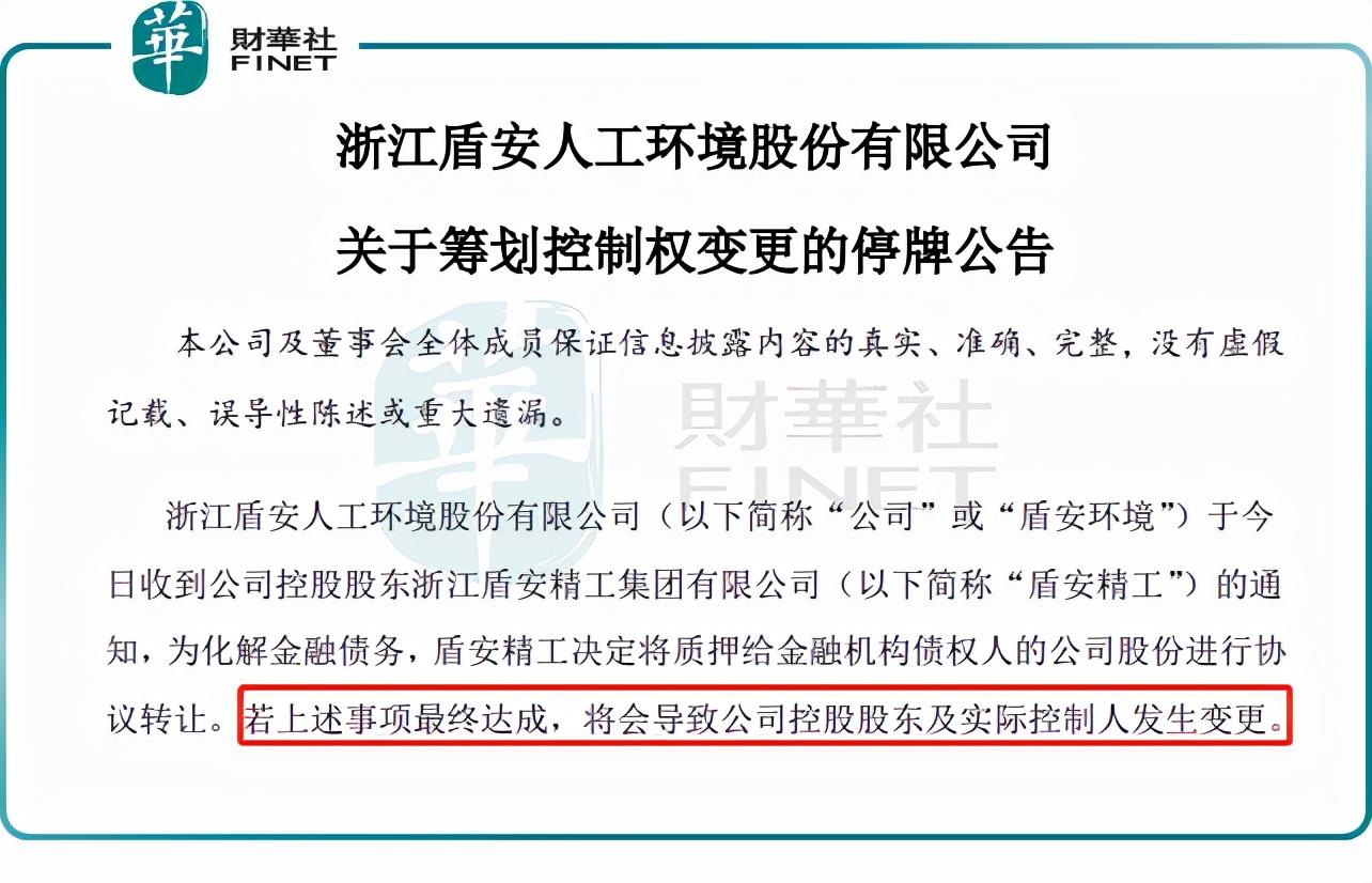 11月9日,盾安环境发布公告称,为化解金融债务,控股股东盾安精工决定将质押给金融机构债权人的公司股份进行协议转让。若上述事项最终达成,将会导致公司控股股东及实际控制人发生变更。