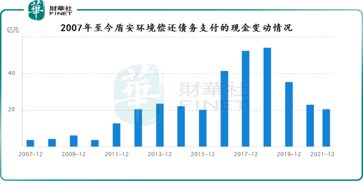 值得注意的是,盾安环保虽进行了资产“瘦身”,但由于前期挖下的坑太多,连续三年每年需要偿还债务现金超20亿元,叠加主营业务造血有限,公司只能举债维持日常经营运转及偿还借款,导致资产负债率居高不下。