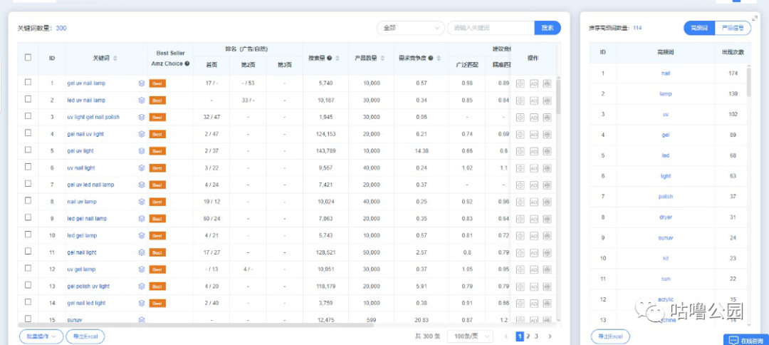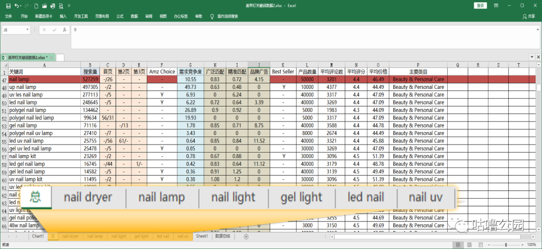 量词数据,同时利用了亚马逊前台下拉框来进行词的验证,分析优秀竞争对手的标题中核心关键词,整合所有数据进行分析。
