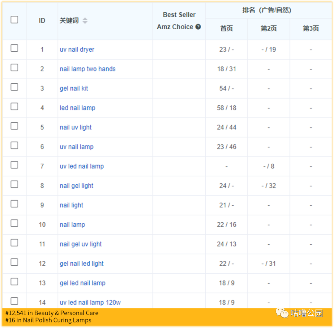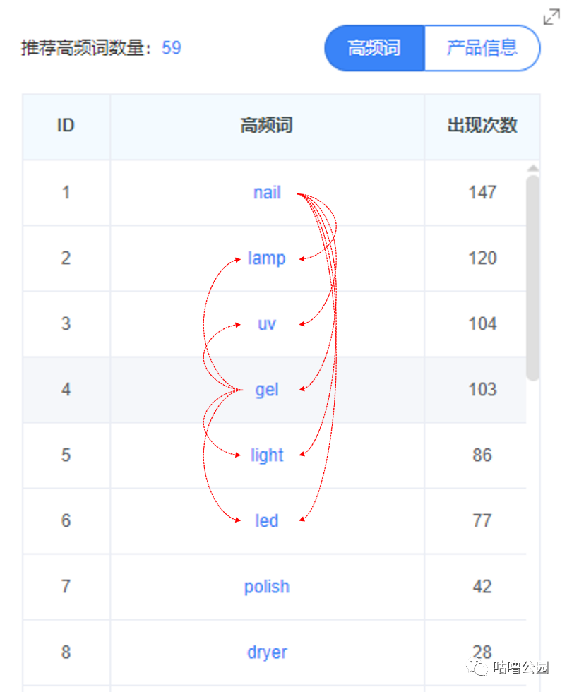 。我们认为词根最好是只由2~3个单词组成,而且是高频出现的词,于是从反查竞品数据里,我们找到这类产品的词根分别是:Nail lamp, nail uv, nail gel,nail light, nail led ,gel lamp,gel uv, gel light, gel led。