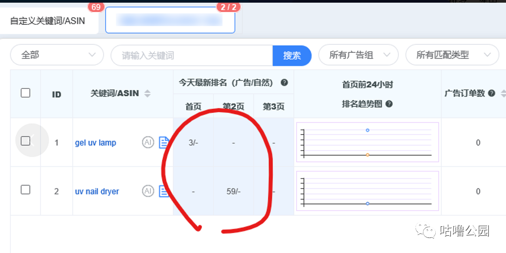 今天我们关注到关键词排名效果,从监控结果中可以看到82个监控关键词,已经有26个长尾词广告排名去到了前2页。前期还没开手动广告的时候,如果有一些长尾词有前三页的排名数据,并且接下来同时有点击和转化的,那开启手动广告的时候,会非常容易打造进前三页排名,所以我们不断检测数据为接下来的手动广告做准备。