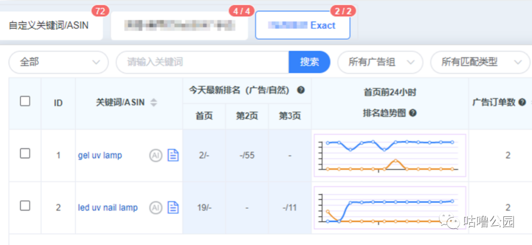 监控关键词在自动广告中的排名情况,为手动广告选词做准备