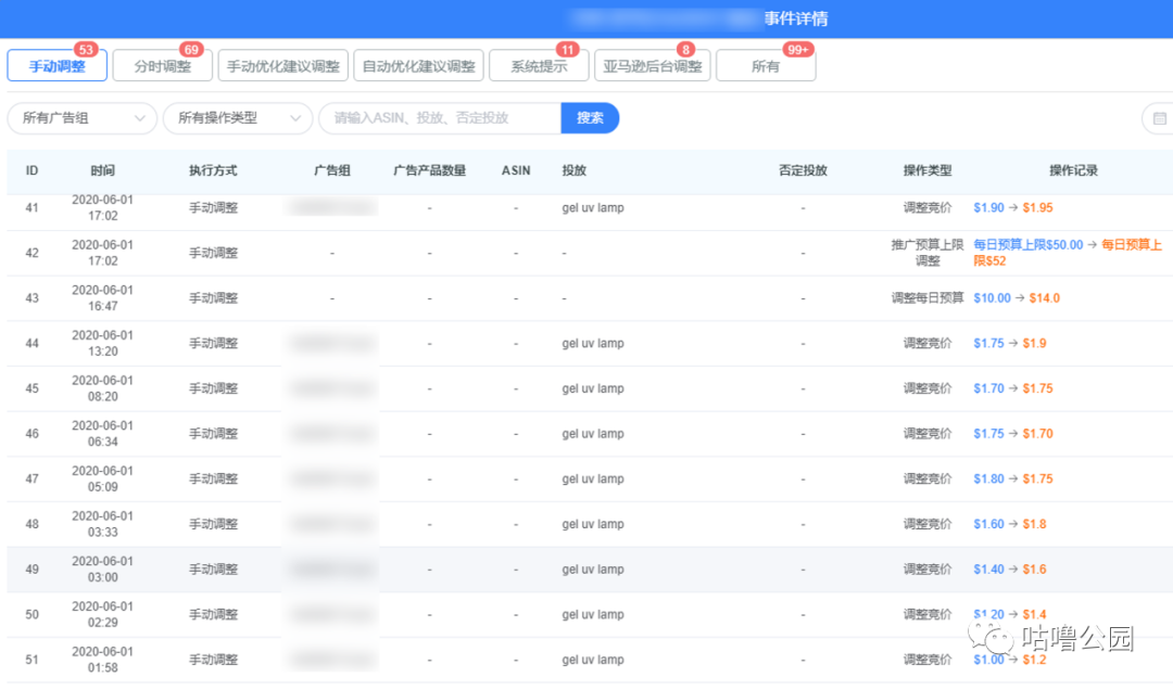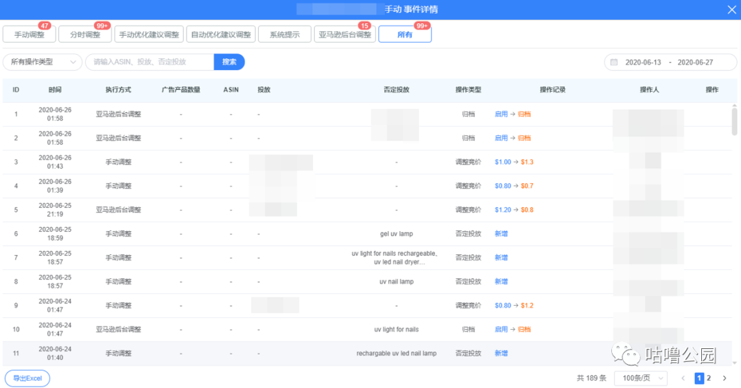 。亿数通的广告日志功能让我们清晰地看到运营是否有灵活应用了分时调价和智能优化规则去管理广告、是否有勤快地监督广告的运行。而且当有成功案例出来时,我们通过广告日志又可以追溯回这个广告完整的打造历程。