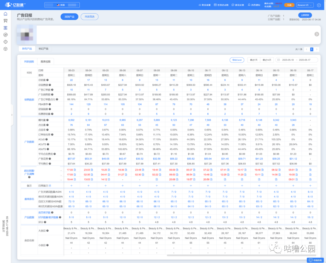 我们逐步下调了自动广告与手动(广泛)广告的竞价与预算。精准投放广告活动由于过早用光预算,我们使用了分时调价,在亿数通上面看到产品的高峰订单统计数据,在
