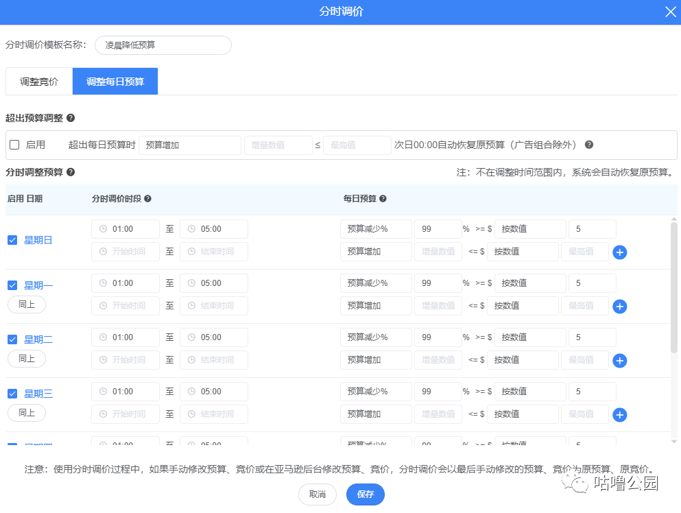 太平洋时间1-5点出单少,降低广告预算,PT5点后恢复预算,以此来延长广告运行时长,保证广告预算能花在高转化的时间段